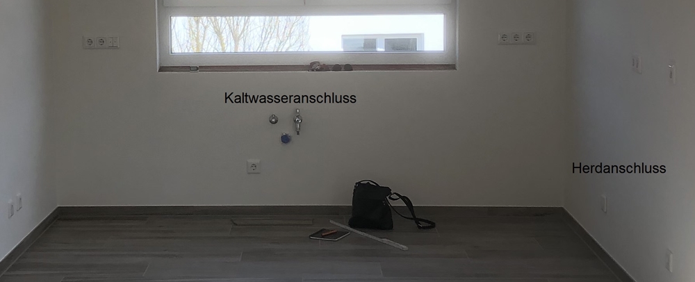 Hier findet der Anschluss im Türbereich unterhalb des Spülbeckens statt.