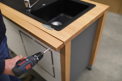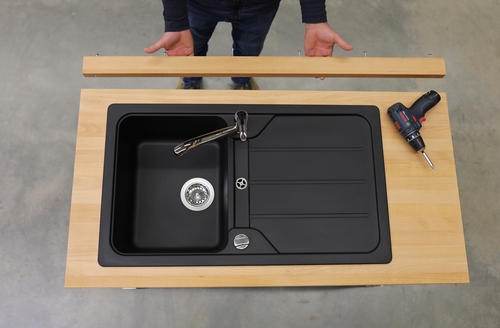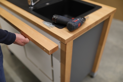 Unsere Arbeitsplattenvertiefungen werden Rückseitig angeschraubt.