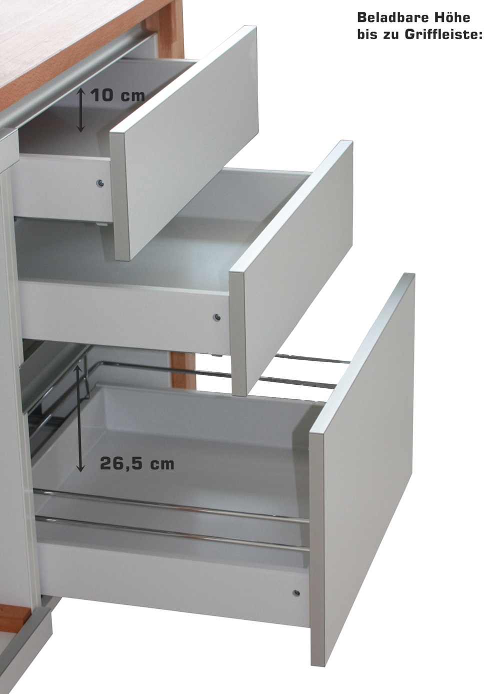 Was ist ein Teilauszug? Länge Schublade ausgefahren (innenmaß): ca. 36 cm. Wird über Gumminoppen