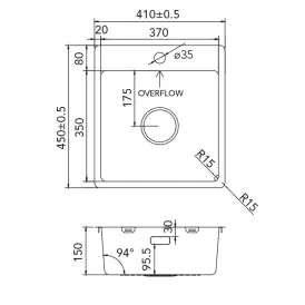 Spülenmaß: ca. 410 x 450 mm, R 15 mm